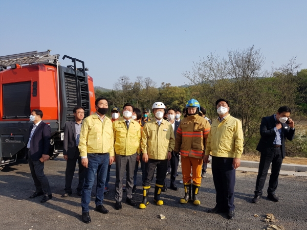 경기도의회 안전행정위원회 박근철 위원장(더민주, 의왕1)은 4월 29일(수) 오후 5시경, 경기도 이천시 모가면 공사장 화재현장을 방문하였다.이날 화재는 오후 1시경 이천시 모가면 소재의 한 물류센터 공사장 지하에서 발생한 불이 확대된 것으로 추정되며, 경기도소방재난본부는 오후 1시 53분경 경기도 소방력을 집중시키는 대응2단계를 발령하는 등 진화를 위해 노력하였다.