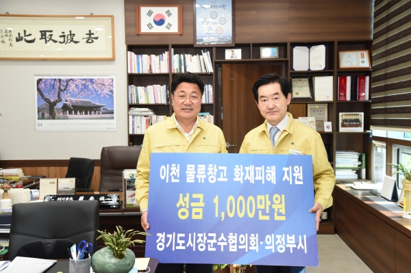 경기도시장·군수협의회 안병용 협의회장(의정부시장)은 5월 1일 오후 이천시청을 방문해 엄태준 이천시장을 만나 물류창고 화재와 관련하여 위로의 뜻을 전하고 성금 500만 원을 전달했다. 협의회 성금과는 별도로 의정부시에서도 성금 500만 원을 지원했다.
