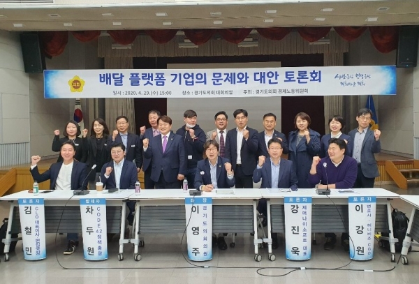 경기도의회에서는 경제노동위원회 주최로 “배달 플랫폼 기업의 문제와 대안“을 주제로 토론회가 개최되었다. 이 자리에는 경제노동위원회 의원뿐만 아니라 타 상임위 소속 의원, 道 관련 부서 공무원, 플랫폼 전문가, 배달업 관계자 등이 참석하여 열띤 토론을 벌였다.