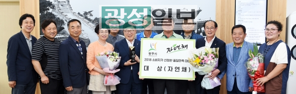 청정지역 광주시의 친환경 농산물 공동브랜드 ‘자연채’가 지난 5일 서울 코리아나 호텔에서 개최된 ‘제9회 소비자가 선정한 품질 만족 대상’시상식에서 친환경농산물부문 2년 연속 ‘대상’을 수상했다.