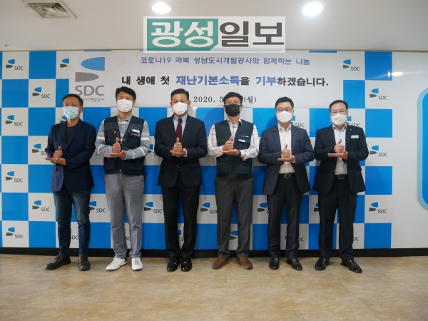 성남도시개발공사(사장 윤정수, 이하 공사) 노사는 18일 성남시(시장 은수미)에서 추진하고 있는 재난기본소득 기부에 동참했다.공사는 29일 코로나19로 어려움을 겪는 이웃들을 위해 임직원을 대상으로 재난기본소득 기부 캠페인을 진행했으며, 기부 릴레이 분위기 조성을 위해 윤정수 사장을 비롯한 각 노동조합 및 임직원들이 솔선수범해서 기부에 동참했다.