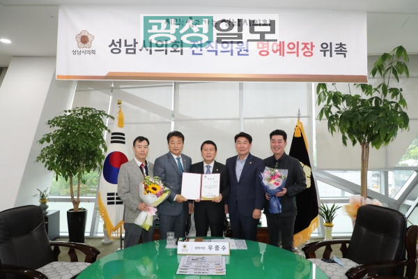 성남시의회(의장 박문석)는 19일 제3대 의원인 우종수 전 의원을 명예의장으로 위촉하며 소통의회 행보를 이어갔다.우종수 전 의원은 수정구 신흥3동 출신 시의원으로 제3대 후반기 의회운영위원장을 역임했으며, 현재는 서울타일 대표이사이자 의정동우회 부회장으로 활발히 활동 중이다.