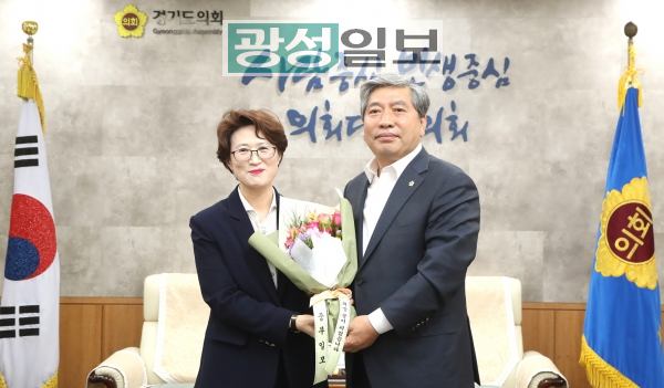 송한준 의장은 19일 오전 의장실에서 최윤정 중부일보 대표이사로부터 꽃다발을 전달받고 “꽃바구니 안에 위로와 격려, 희망을 담아 릴레이를 이어갈 수 있도록 하겠다”며 경기지역 화훼농가에 응원의 메시지를 전했다.