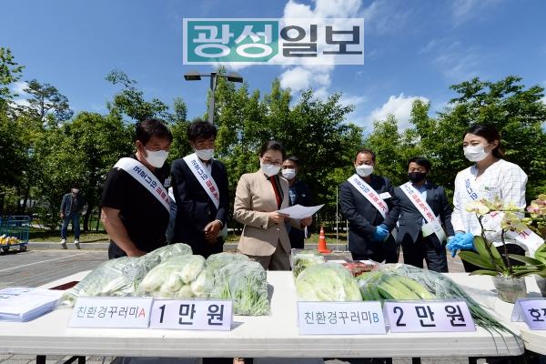 한편 이 날 열린 행사는 성남시와 성남시시설채소연합회장 등 4개 단체가 참여한 가운데 지역에서 재배·생산한 친환경 농산물 꾸러미(2종류)와 화훼세트(6종류)를 시중가보다 최대 50% 싸게 판매해 지역 농가 살리기에 적극 앞장서고자 마련됐다.