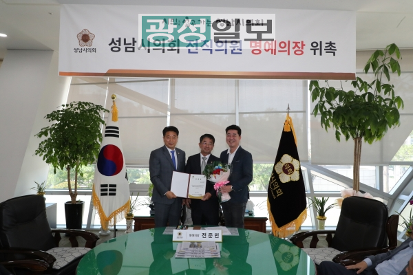 성남시의회(의장 박문석)는 전준민 전 의원을 일일 명예의장으로 위촉
