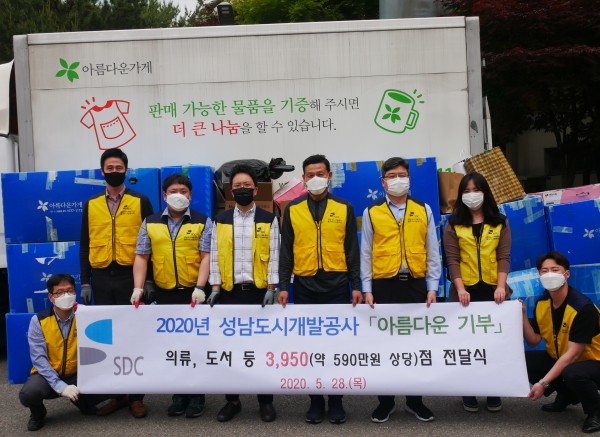 성남도시개발공사(사장 윤정수, 이하 공사)는 28일 공사 직원들이 국내 외 저소득층 및 사회 취약 계층을 돕기 위해 기증한 물품들을 국내 대표적 사회적 기업인 '아름다운 가게'에 기부했다.