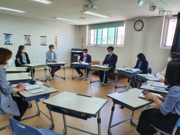 학교내 코로나19 방역현황에 대한 설명을 듣고, 학교에서 필요한 지원내용과 애로사항을 청취하는 자리를 가졌다