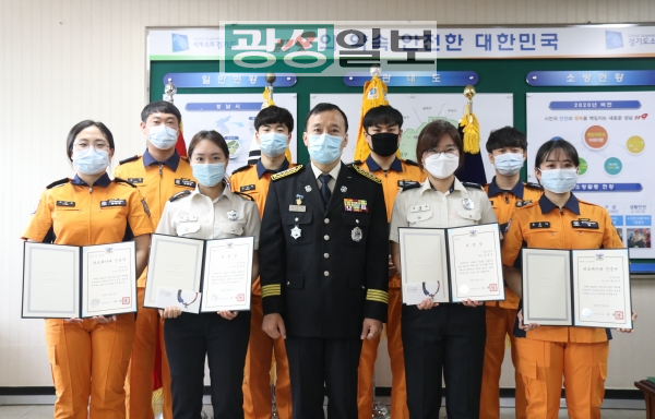 이날은 소방행정 종합감사 유공 공무원 표창 수여식도 함께 진행됐다.2020년도 성남소방서 종합감사에 적극적인 참여와 노력으로 소방행정 발전에 이바지한 공을 인정받은 성남소방서 김영주, 김윤정 소방교에 경기도지사 표창을 수여했다.