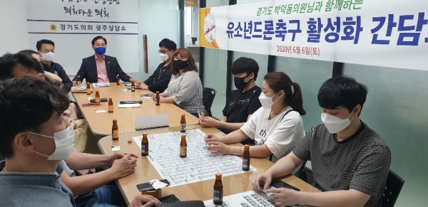 박덕동 도의원는 광주시 관내 드론축구단 관계자와 함께 드론축구단 활성화