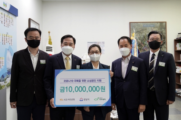 성남시 소재 KB국민은행 경기남지역 영업그룹(대표 문경호)에서는 코로나19 장기화로 어려움을 겪는 성남 소상공인에게 도움이 되고 싶다며 6월 9일 1천만원의 후원금을 냈다.