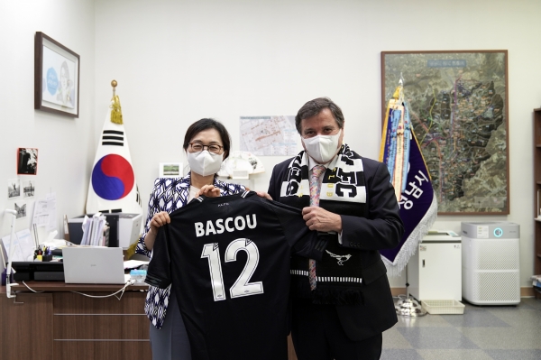 은수미 구단주도 “바스쿠 대사의 성남 방문에 감사드린다. 아르헨티나가 한국과 오랜 우호관계를 유지하고 있는 만큼 성남FC와도 다양한 축구 교류를 통해 서로 발전할 수 있기를 기대한다.”고 전하며 “코로나19로 인해 전 세계가 전례 없는 어려움에 처한 상황에서 축구를 통해 위로와 희망의 메시지를 전달할 수 있도록 함께 노력하였으면 한다“는 당부의 말도 잊지 않았다.