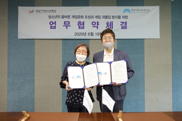 성남시청소년재단(대표이사 진미석)과 게임이용자 보호센터(센터장 이정훈)는 지난 19일 청소년들의 건강하고 올바른 게임문화 정착을 위한 업무협약을 체결했다.