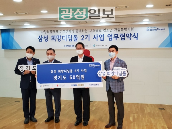 경기도가 삼성에서 후원하고 사랑의열매 사회복지공동모금회에서 주관하는 ‘보호종료 청소년 자립통합지원사업’ 대상 지역에 최종 선정돼 총 50억원을 후원받는 업무 협약을 15일 체결했다.