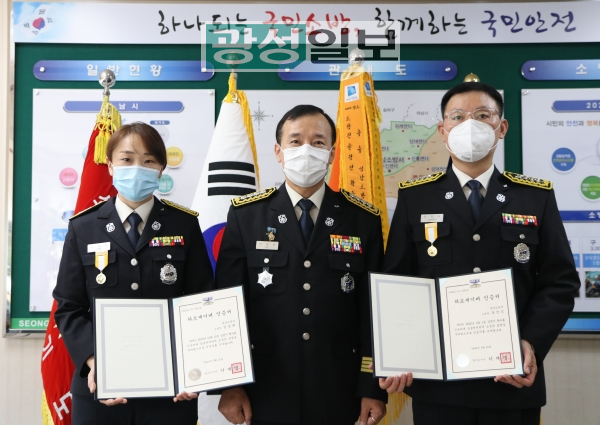 구급대원 소방장 김성희, 추진식 구급대원은 각각 5회의 하트세이버를 수여받아 순금기장 수여의 영예를 안았다.