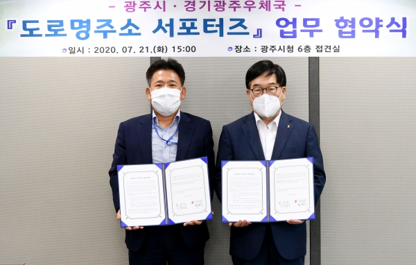 광주시는 21일 경기광주우체국과 도로명주소 사용 확대와 안내시설물의 상시 유지관리를 위한 ‘도로명주소 서포터즈 운영 협약’을 체결했다.