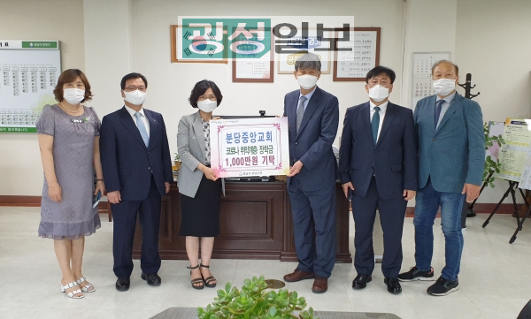 분당중앙교회는 분당구 관내 저소득층 자녀들을 위해 써달라고 <코로나19 극복 장학금 1천만원>을 ‘경기사회복지공동모금회’에 지정 기탁한 데 이어, 2020.07.27.(월) 오전 10시30분, 분당구청장실에서 최종천 담임목사를 비롯한 교회 장로들과 고혜경 구청장과 관계공무원들이 참석한 가운데 ‘지정기탁금 전달식’을 가졌다.
