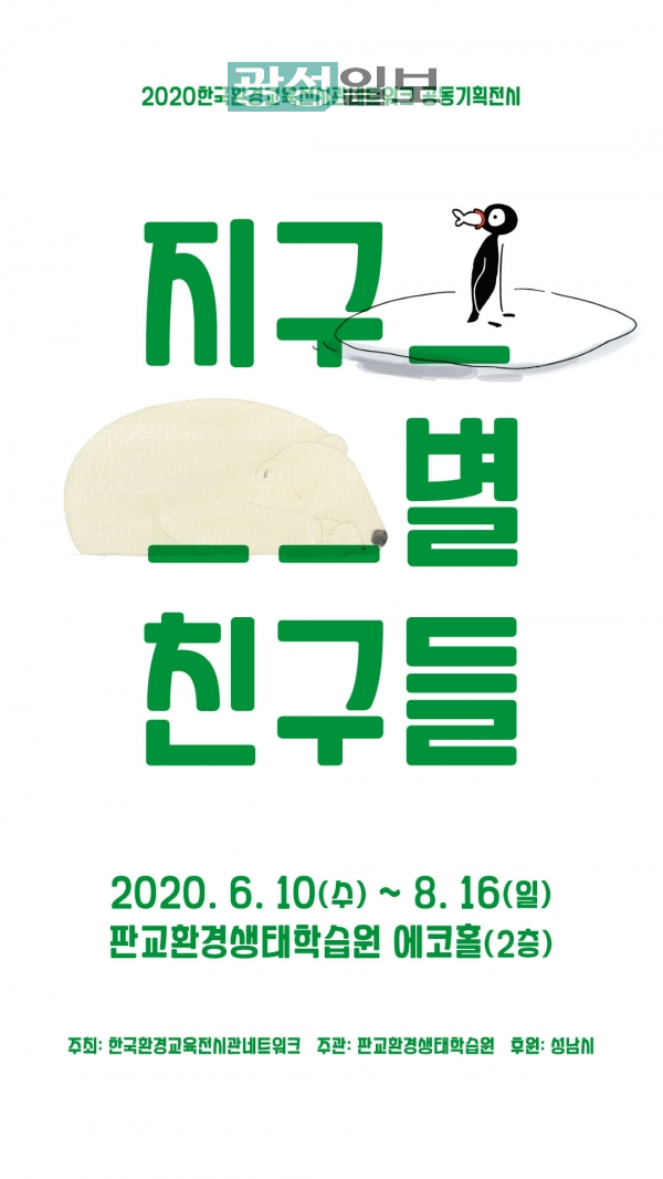 성남시 판교환경생태학습원(원장 하동근)은 8월 16일(일)까지 기후 변화와 환경 문제를 아이들이 좋아하는 동물을 소재로 부드럽게 이야기를 풀어낸 2020년 기획전 「지구별 친구들」 전시회를 개최한다.