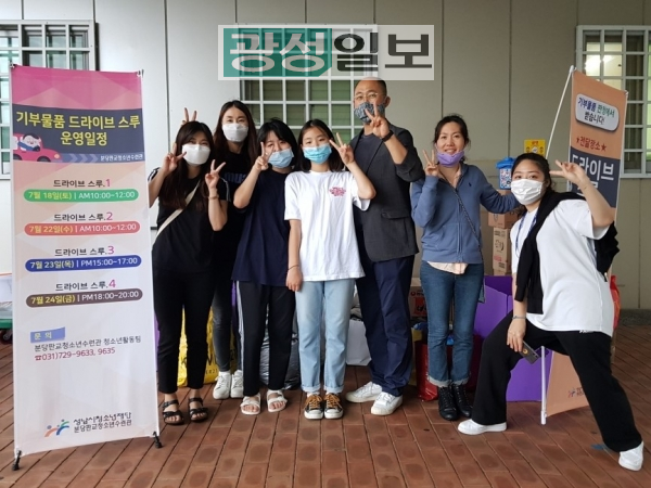 이번 기부활동은 분당판교청소년수련관 소속 자치기구인 청소년운영위원회 「가온누리」와 청소년자원봉사단 「사나래」가 기획 · 운영한 활동으로 판교 지역 주민들이 가정에서 쓰지 않는 생필품, 옷, 장난감 등의 물품을 코로나19 확산 방지 및 주민 안전을 위해 드라이브스루 방식으로 기부 받았다.