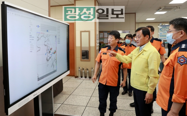 장현국 의장은 11일 오후 경기도 재난·안전 컨트롤타워인 ‘경기도소방재난본부 재난종합지휘센터’와 수원 소재 전통시장 ‘구매탄시장’을 잇따라 찾아 현안을 청취했다.먼저, 재난종합지휘센터에서 이형철 경기도소방재난본부장 및 권용성 센터장이 참석한 가운데 ‘경기도 재해 운영시스템’ 소개와 ‘집중호우 및 코로나19 대응상황 관련 보고’를 받은 장현국 의장은 소방대원들에게 철저한 대책마련을 당부했다.