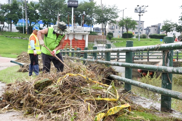 이날 정화활동은 집중호우로 인해 청석공원 산책로 및 자전거도로에 유입된 생활쓰레기 및 토사 부유물을 제거해 시민에게 쾌적하고 깨끗한 공원을 제공하기 위해 마련했다.