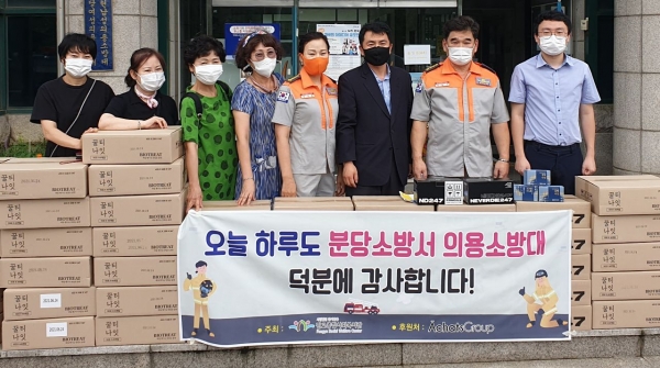 분당소방서 의용소방대원들을 응원하기 위한 후원물품 전달식을 2020년 8월 14일(금) 분당소방서에서 진행하였다.