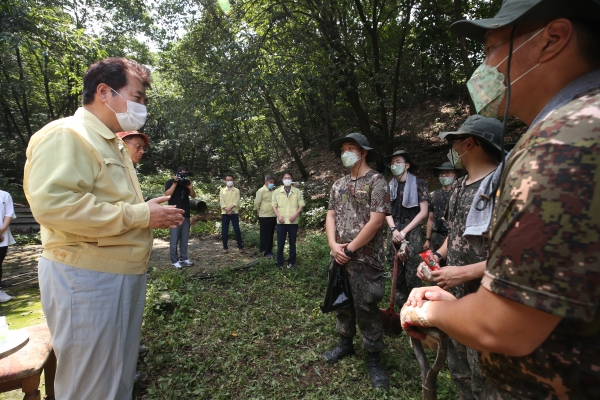백군기 용인시장은 17일 집중호우로 수해를 입은 처인구 백암‧원삼면을 찾아 수해민을 위로하고 복구 작업을 거들었다.지난 15일부터 이어진 이번 봉사엔 100명의 군인과 126명의 자원봉사자, 9명의 현장지원 담당 공무원 등 235명이 동참했다.