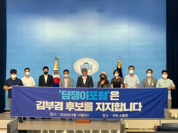 김부겸 민주당 대표후보 지지선언은 뚜벅이산악회에 이어 대표적인 친문조직인 담쟁이포럼(회장 김용원)이 김부겸 더불어민주당 당대표 후보에 대한 지지선언을 하고 나섰다.지난 2012년 18대 대선 출마를 준비하던 문재인 대통령을 돕기 위해 결성된 이래 2017년 촛불집회와 대선을 거치면서 오늘날 문재인 정부의 싱크탱크로 거듭난 담쟁이포럼은 19일 국회 소통관에서 김부겸 후보 지지선언 기자회견을 가졌다.