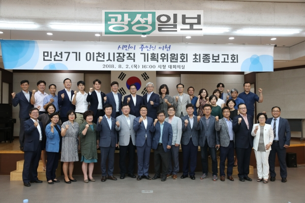 이천시는 지난달 31일 활동을 종료한 민선 7기 이천 시장직 인수를 위한 ‘시민이 주인인 이천시기획위원회’는 2일 이천시청 대회의실에서 최종보고회를 개최했다.이날 최종보고회에는 이천시장, 경기도의회의원, 이천시의회의원, 공무원 등 100여 명이 참석했다.