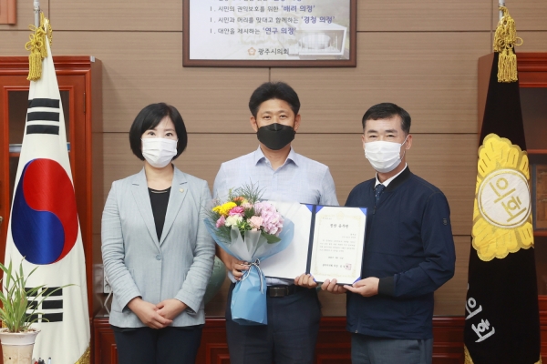 한편, 광주시의회는 공직자로서 본분을 다하며 의정활동 지원에 적극적인 집행부 공직자를 매월 의원별로 추천하여 선정하고 있으며, 의회 칭찬공무원으로 선정된 공직자는 2020년 광주시 의회대상 행정 부문 후보에 오르게 된다.