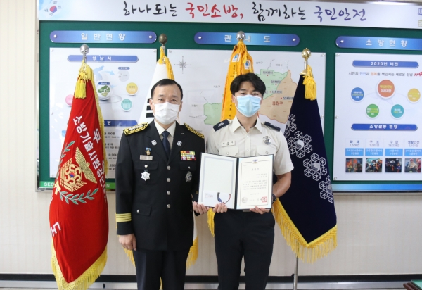 경기도 자랑스러운 소방공무원으로 선정된 김문수 소방사에게 표창장을 수여했다