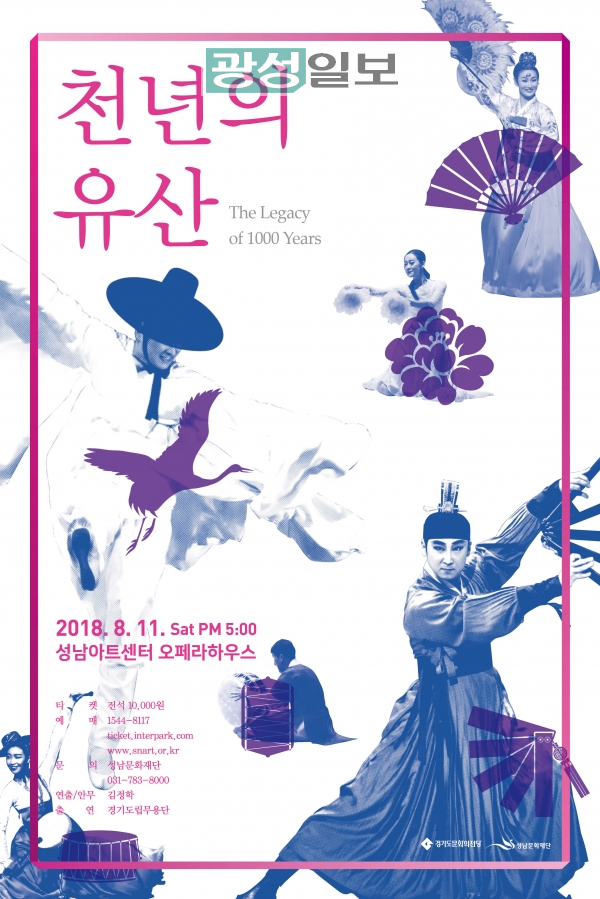 경기도 대표 예술단체인 경기도립무용단은 지난 2009년 6월 <천년의 유산> 첫 무대로 30여 가지의 작품들을 시즌별 흐름에 맞게 구성, 관객의 눈과 귀를 사로잡았다. 이번 성남아트센터 무대는 <천년의 유산> 시리즈 탄생 10주년과 더불어 김정학 예술감독이 이끄는 대극장 규모의 첫 레퍼토리 공연이란 점에서 더욱 의미가 있다.