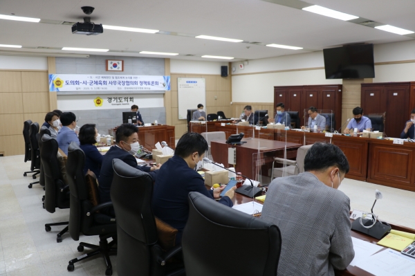 경기도의회 문화체육관광위원회(위원장 최만식, 이하 ‘위원회’)는 3일 상임위 회의실에서 경기도 시·군체육회 사무국장 협의회(회장 정수동, 이하 ‘협의회’) 임원진과 지방체육 현안 논의를 위한 정책토론회를 개최 하였다.