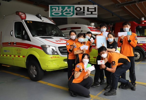 소방서에 전달된 편지는 코로나19 확산 방지를 위해 더운 날씨에도 불구하고 감염보호복을 입고 고군분투하는 구급대원들의 노고에 감사하다는 글과 함께 “우리도 코로나19를 이겨내기 위해 마스크도 잘 착용하고, 손도 깨끗하게 씻겠다”는 예쁜 마음이 담겨 있었다.