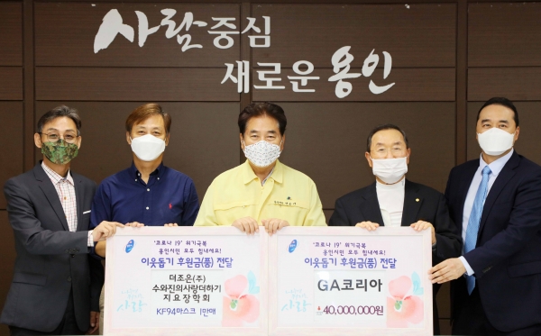용인시는 11일 코로나19로 어려움을 겪고 있는 취약계층과 저소득층을 돕는 온정의 손길이 이어지고 있다고 밝혔다.이날 GA코리아 이동준 회장 등 관계자 3명은 백군기 시장실을 방문해 이웃돕기 성금 4천만원을 기탁했다. GA코리아는 지난 4월에도 코로나19 극복에 써 달라며 성금 3천만원을 기탁한 바 있다