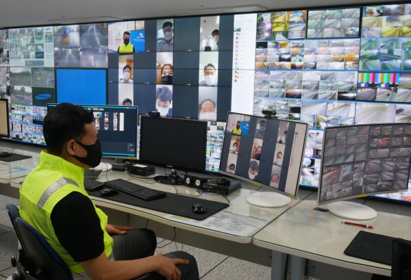 성남도시개발공사, 통합모니터링 가능한 SDC 중앙관제센터 눈길은 수십 개의 모니터 앞에 자리 잡은 중앙관제센터에서는 2,600여대의 CCTV 현황과 태풍으로 인한 시설물피해현황 영상이 실시간 모니터링 된다.