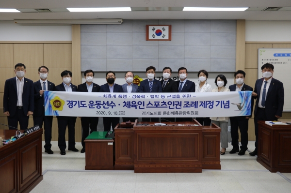 이를 위하여 경기도의회 문화체육관광위원회는 지난 9월 2일 「경기도 운동선수․체육인 스포츠인권 조례」(대표발의 강태형 의원, 더불어민주당, 안산6)를 만장일치로 의결하였고, 2020. 9. 18 경기도의회 제346회 임시회 본회의를 통과하였다.