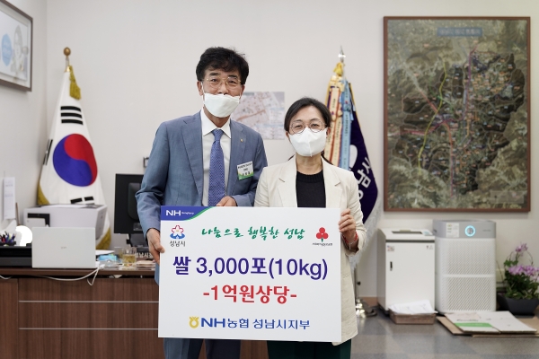 농협은행 성남시지부는 2012년부터 해마다 쌀을 성남시에 기탁해 이번까지 9년간 2만550포대(5억8000만원 상당)를 홀몸노인, 장애인, 한부모가족 등에 전달했다.