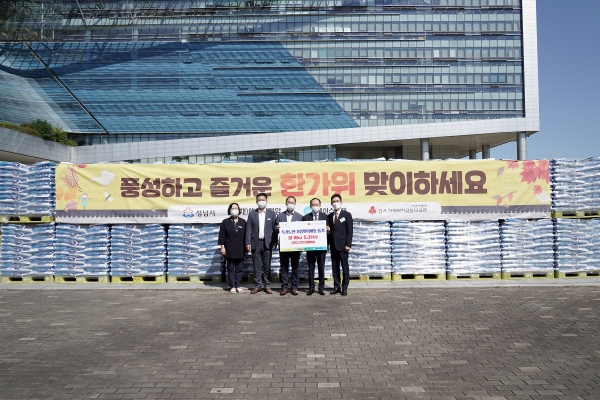 재단법인 에이스경암(이사장 안유수)이 추석을 앞둔 9월 22일 성남시에 10㎏짜리 쌀 5314포대를 기탁했다