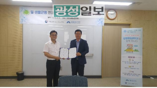 고용노동부 성남지청(지청장 김태현)은 8월 9일 (주)양평레일바이크(대표이사 유정선)와 함께 「일·생활균형 캠페인」활성화를 위한 공동프로모션 업무협약(MOU)을 체결했다.