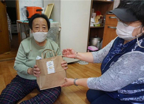 송편나눔키트는 생활지원사 108명을 통하여 어르신께 전달되었으며, 생활지원사는 열체크와 마스크 착용, 손소독을 진행한 후 사회적 거리 두기를 유지하며 송편으로 어르신과 마음을 나누었다.