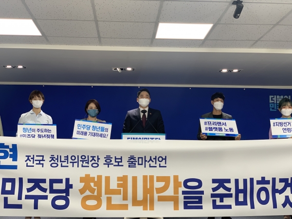 신정현 경기도의원(더불어민주당, 고양3)이 더불어민주당 청년위원장 선거 출마를 공식 선언했다.신 의원은 27일 오전 더불어민주당 중앙당사에서 기자회견을 열고“5개의 콜 프로그램을 보며 일하던 만 31살의 대리운전 기사가 이제는 더 많은 청년들의 삶을 바꾸기 위해 더불어민주당 청년위원장 선거에 출마한다”고 밝혔다.