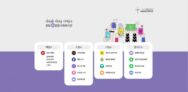 중탑종합사회복지관은 코로나19로 인해 지역주민들이 직접 참여하던 건강관리, 취미여가, 교육프로그램 등이 장기 휴강되었고, 독거노인 및 취약계층 청소년을 위한 봉사활동에 참여하던 자원봉사 활동이 중단되었다.기본적인 돌봄서비스(경로식당, 밑반찬, 안부연락)만을 유지한 체 운영을 하면서 비대면으로 복지서비스를 어떻게 전달할 것인지 고민한 끝에 온라인 소통채널을 통합화한 중탑e종합사회복지관을 개관이 진행되었다.