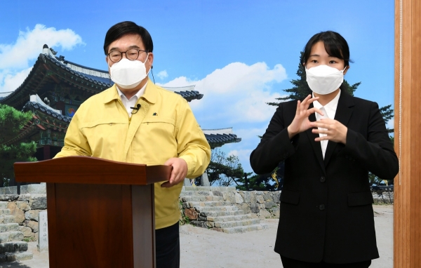 광주시는 19일 시청 6층 시장실에서 관내 SRC재활병원에서 발생한 코로나19 집단감염 관련, 시정 브리핑을 개최했다.이날 시정 브리핑은 감염확산을 방지하기 위해 온라인으로 실시했으며 신동헌 시장이 직접 발표했다.