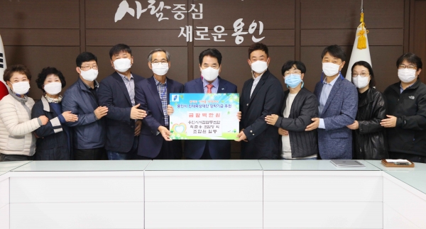 용인시는 20일 시 서점협동조합 최준용 조합장 등 10명이 백군기 시장실을 방문해 800만원의 장학기금을 기탁했다고 밝혔다.