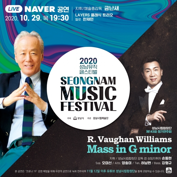 손동현 지휘자가 이끄는 시립합창단의 합창은 소프라노 오미선, 메조소프라노 양송미, 테너 허남원, 바리톤 강형규의 협연과 시립국악단의 찬조 출연으로 함께하며 R. Vaughan Williams의 G 단조 미사곡 공연으로 코로나19로 힘든 우리에게 위로와 희망을 선사할 것이다.