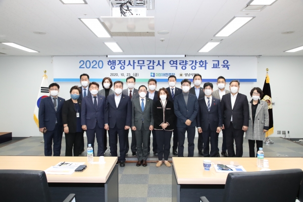 성남시의회 더불어민주당 의원협의회(마선식 대표)에서는 지난 23일 의회 세미나실에서 ‘예산심의를 중심으로 2020 행정사무감사’교육을 실시했다.