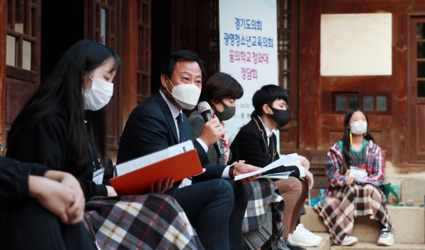 종택 앞뜰에 디귿자(ㄷ) 형태로 둘러앉은 장현국 의장 등 의원들과 청소년들은 ‘의장이 생각하는 청렴의 의미’, ‘청소년이 가짜뉴스를 걸러내고 좋은뉴스를 찾는 방법’ 등에 대해 이야기를 나눴다.먼저, 장현국 의장은 청렴을 ‘공직자의 최우선 과제’이자 ‘공공기관의 국가경쟁력’이라고 강조했다. 그는 “부패와 반칙 없는 사회, 특권 없는 청렴하고 투명한 사회를 구현하기 위해선 주민의 대표기관인 지방의회의 청렴도가 무엇보다 중요하다”며 경기도의회는 지난 7월 의회의 청렴의식을 제고하기 위해 청렴 토크콘서트를 열고, 청렴 서약식 및 공연 등을 진행하는 등 청렴정신 실천에 앞장서고 있다”고 설명다.