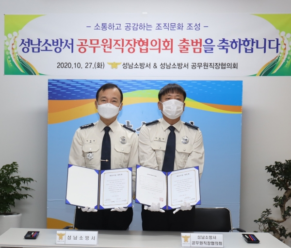 성남소방서(서장 이점동)는 10월 27일 오전 10시 2층 소회의실에서 소방조직 내 의사소통 창구 역할을 담당하는 직장협의회를 공식 출범했다 공무원 직장협의회는 지난 6월 11일 ‘공무원 직장협의회 설립·운영에 관한 법률’의 개정으로 소방조직 내 협의회 구성이 가능해졌다.