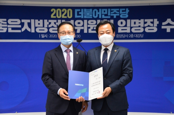 장현국 경기도의회 의장(더민주, 수원7)이 더불어민주당 ‘참좋은지방정부위원회’ 상임위원으로 임명됐다.장현국 의장은 지난 27일 서울 여의도 더불어민주당사 2층 대강당에서 열린 ‘2020 참좋은지방정부위원회 임명장 수여식’에서 홍영표 상임위원장으로부터 임명장을 수여받았다.