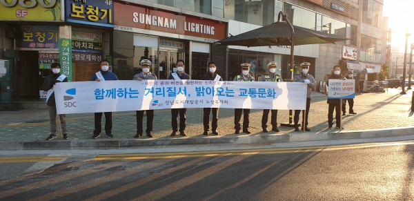 성남도시개발공사(사장 윤정수, 이하 공사) 노상주차처는 최근 성남중앙경찰서와 함께 행락철을 맞아 성남 모란시장 사거리에서 교통사고 예방과 교통문화 정착을 위한 캠페인을 실시했다.